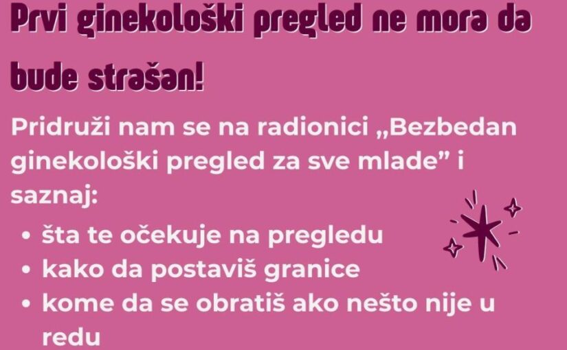 Cilj radionice je informisanje i osnaživanje učesnica i učesnika kroz razgovor o značaju redovnih ginekoloških pregleda, pravima pacijentkinja, kao i o tome kako da pregled protekne bez neprijatnosti i straha. Organizatori ističu da je edukacija ključna za unapređenje reproduktivnog zdravlja i podizanje svesti o dostupnim zdravstvenim uslugama.