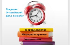 Biblioteka šabačka poziva srednjoškolce da se prijave na radionicu „Uči pametno!“. Ovaj kurs je namenjen svim đacima koji žele da usavrše svoj pristup učenju, bez obzira na dosadašnji školski uspeh i akademske ambicije. Na putu što lakšeg savladavanja tehnika učenja sve zainteresovane učenike vodiće Ognjen Vešić, diplomirani psiholog.