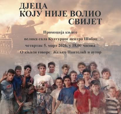 Promocija knjige „Djeca koju nije volio svijet“ autora Bojana Vegare iz Bratunca biće održana u četvrtak 05. marta sa početkom u 18 časova, u velikoj sali Kulturnog centra.